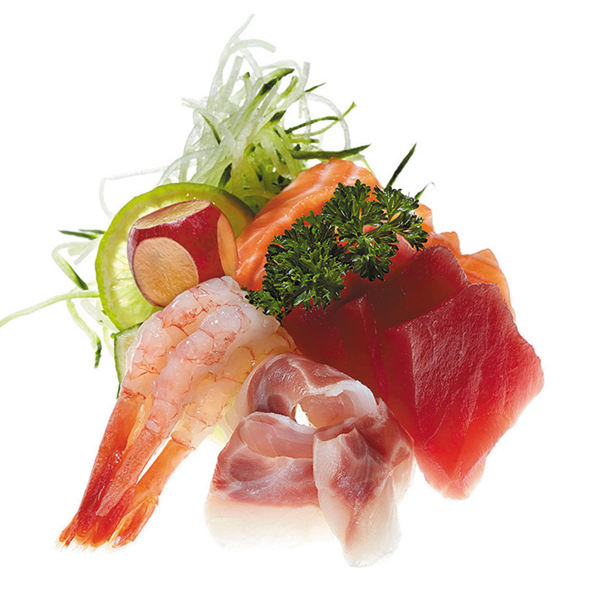 2pz salmone, 2pz tonno, 2pz branzino, 2pz gambero rosso.