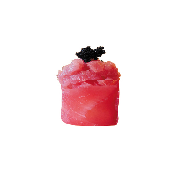 Base di riso, tartare di tonno, mayo, tobika, avvolto da tonno.