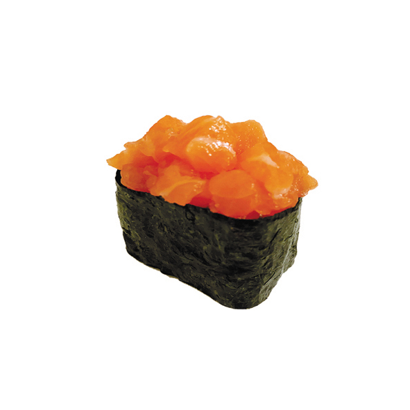 Base di riso, tartare di salmone, avvolto da alga nori.