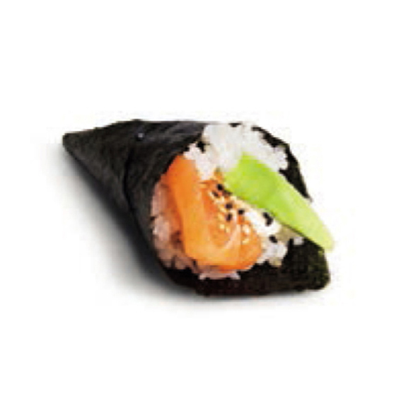Salmone, avocado. Cono di alga nori ripieno di riso (1pz).