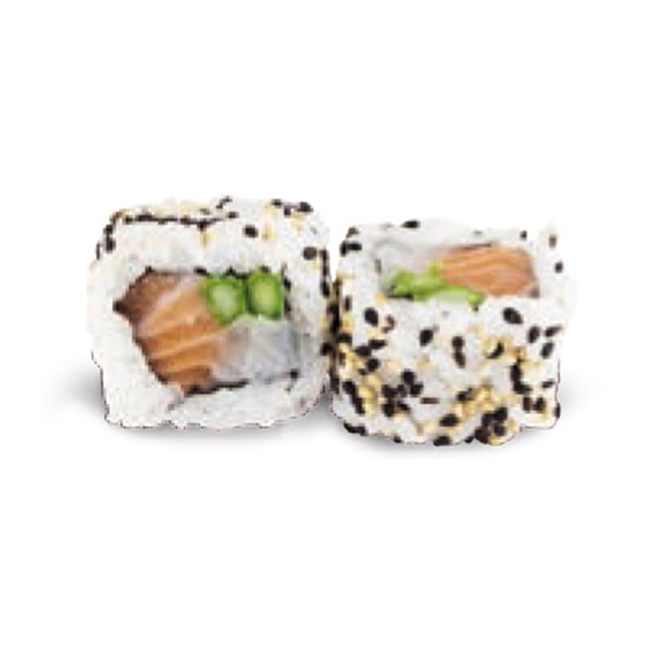 Salmone, branzino, asparagi, sesamo. Roll di riso (8pz).